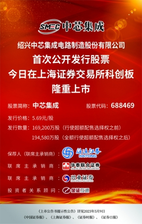 2023年5月10日,紹興中芯集成電路制造股份有限公司(公司簡(jiǎn)稱“中芯集成”;股票代碼:688469)成功在上交所科創(chuàng)板上市發(fā)行,成為無(wú)錫創(chuàng)投集團(tuán)收獲的第44家上市企業(yè)、第13家科創(chuàng)板上市企業(yè)。